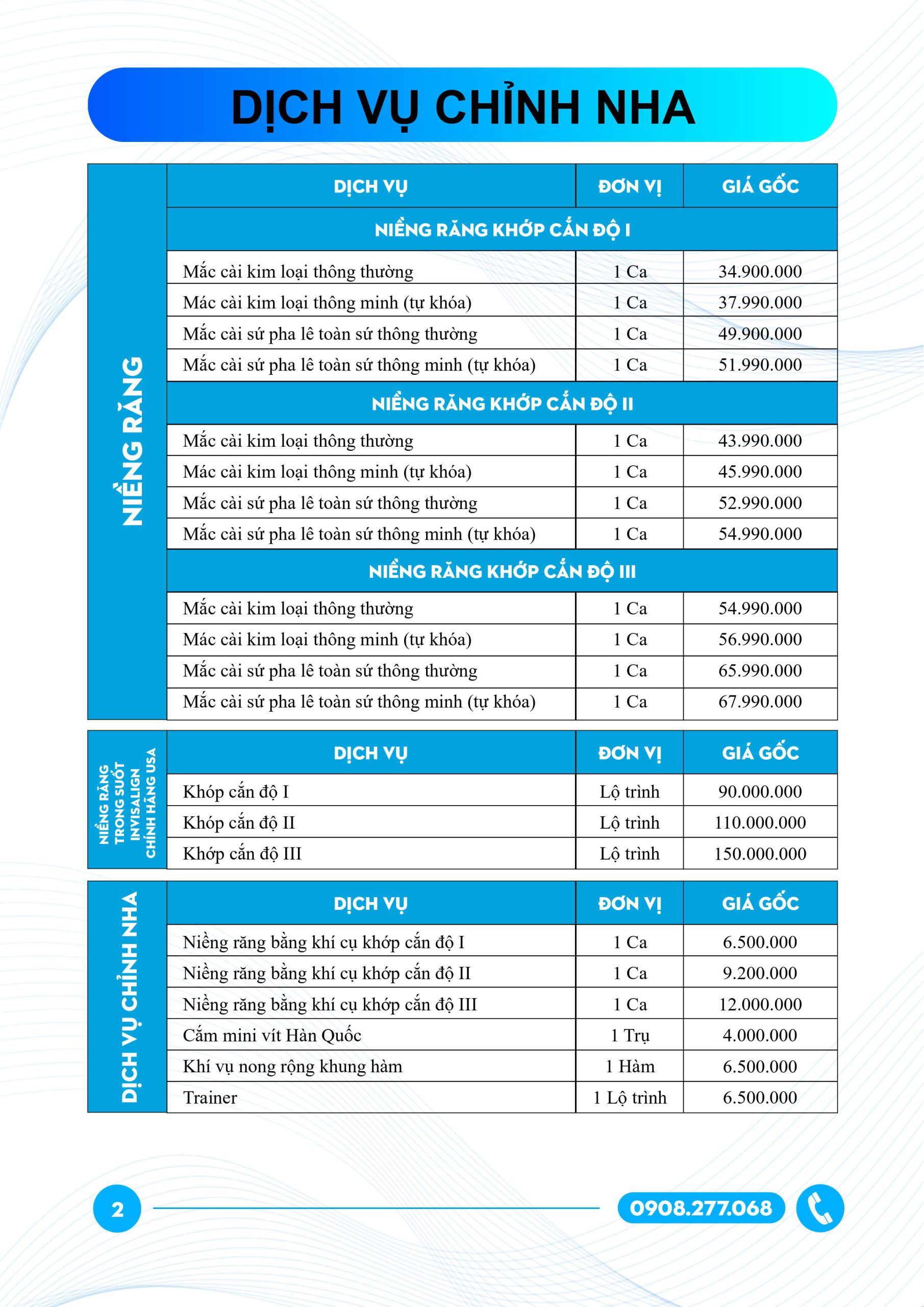 Bảng giá dịch vụ chỉnh nha
