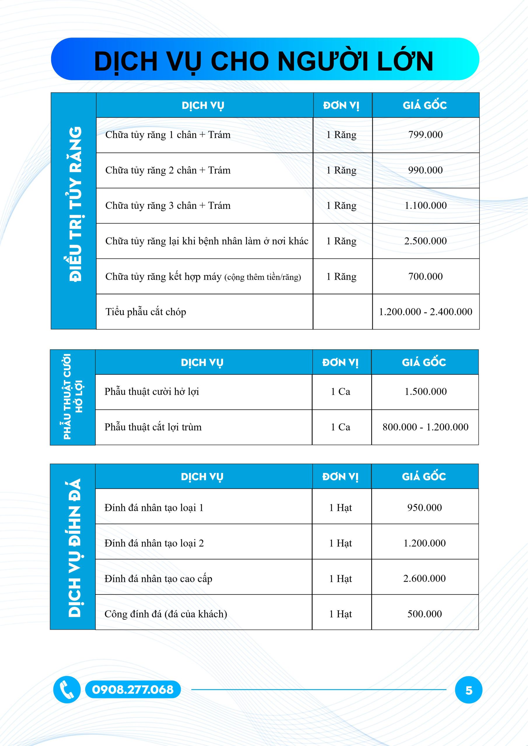 Bảng giá nha khoa cho người lớn