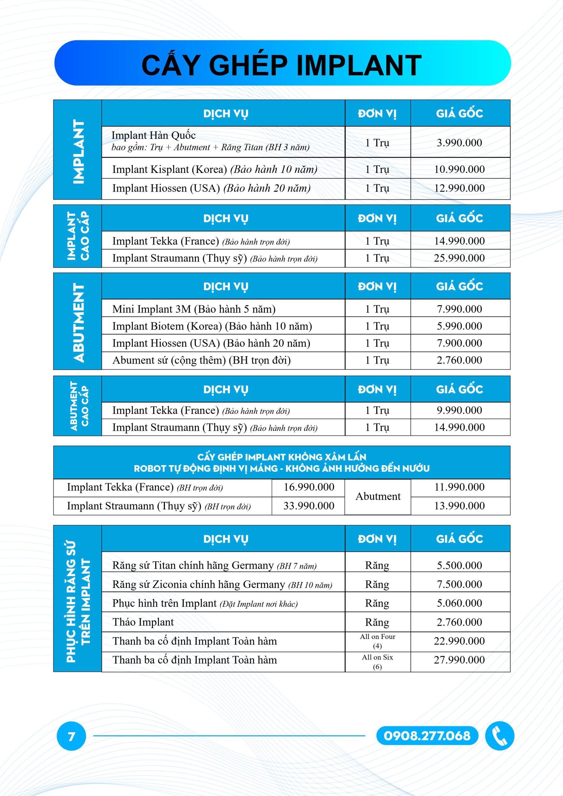 Bảng giá cấy ghép Implant