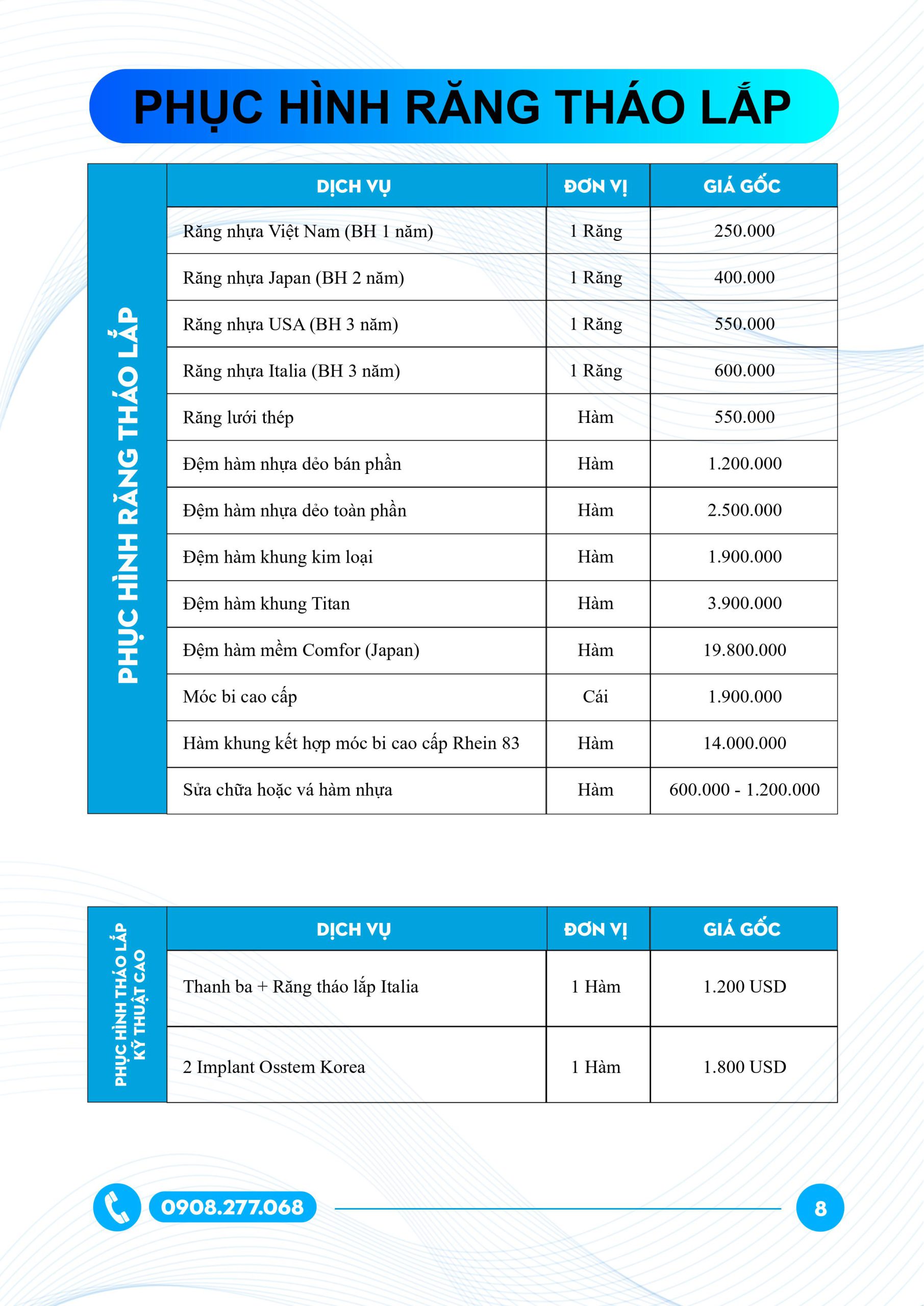 Bảng giá phục hình răng tháo lắp